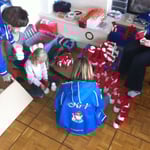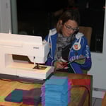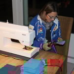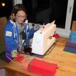 Wie es der Zufall will besitzt einer der StammgästeNr1 eine leistungsfähige Nähmaschine. Und so wurden an wenigen Tagen aus Fleece-Stoff unterschiedlicher Farbe dutzende von Mützen und Schals für Schneemänner unterschiedlichster Grösse genäht.